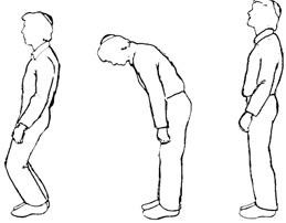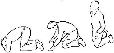 The author wrote In his comment about these positions: “In most contemporary congregations very few people keep to the tradition of falling prostrate. Sometimes it is only the Prayer leader and the rabbi who does so. In more traditional congregations, however, some worshipers, men and women, will join the Prayer Leader and rabbi in the act of prostrating themselves. In Israeli synagogues, the practice is more widespread than in synagogues elsewhere. Since this is a position that we are unaccustomed to, one who has never done this before might very well demur. But once accomplished, the experience provides such a spiritual uplift that one looks forward to repeating it. Those willing to try this ancient ritual form on the rare occasions that call for it might welcome the following diagrams of the correct procedure”